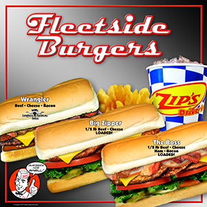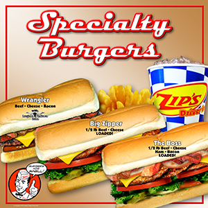 | Z-Pop now provides high quality Window Clings at a very low price! Several Zip's Drive-in locations have recently put these powerful displays to work on the inside and outside. They're very easy to install, remove, reinstall...and they always look great. Below are a few samples that are available. Or, we can print most any content at most any size of your choice. |